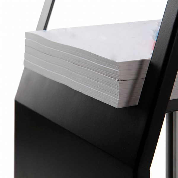 Porta Folletos con Postapóster Ariza 30 tiene un diseño elegante gracias a su estructura metálica de color negro y a su diseño minimalista.